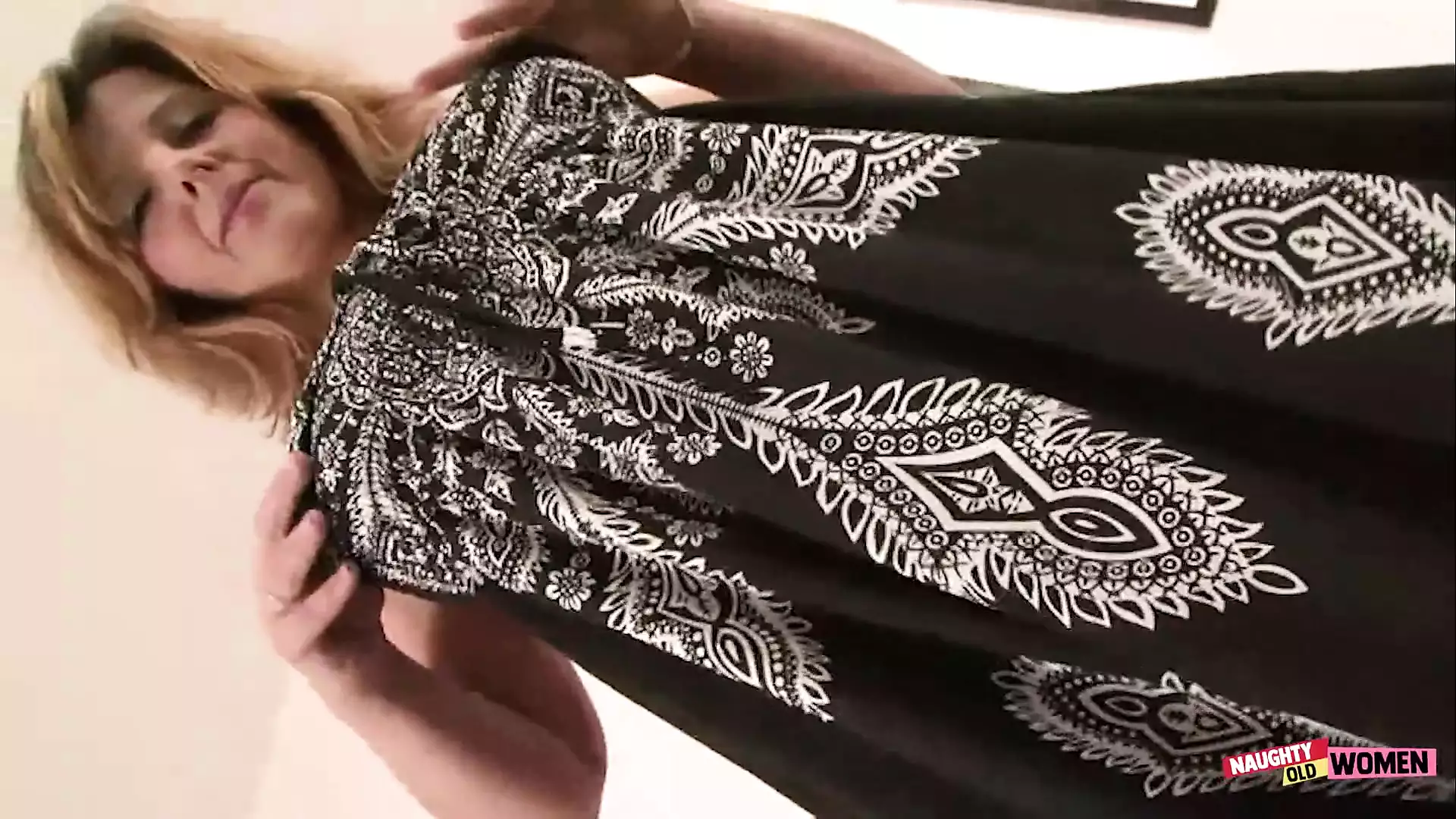 After dressing up provocatively the naughty blonde milf enjoys intense interracial sex with cum swallowing